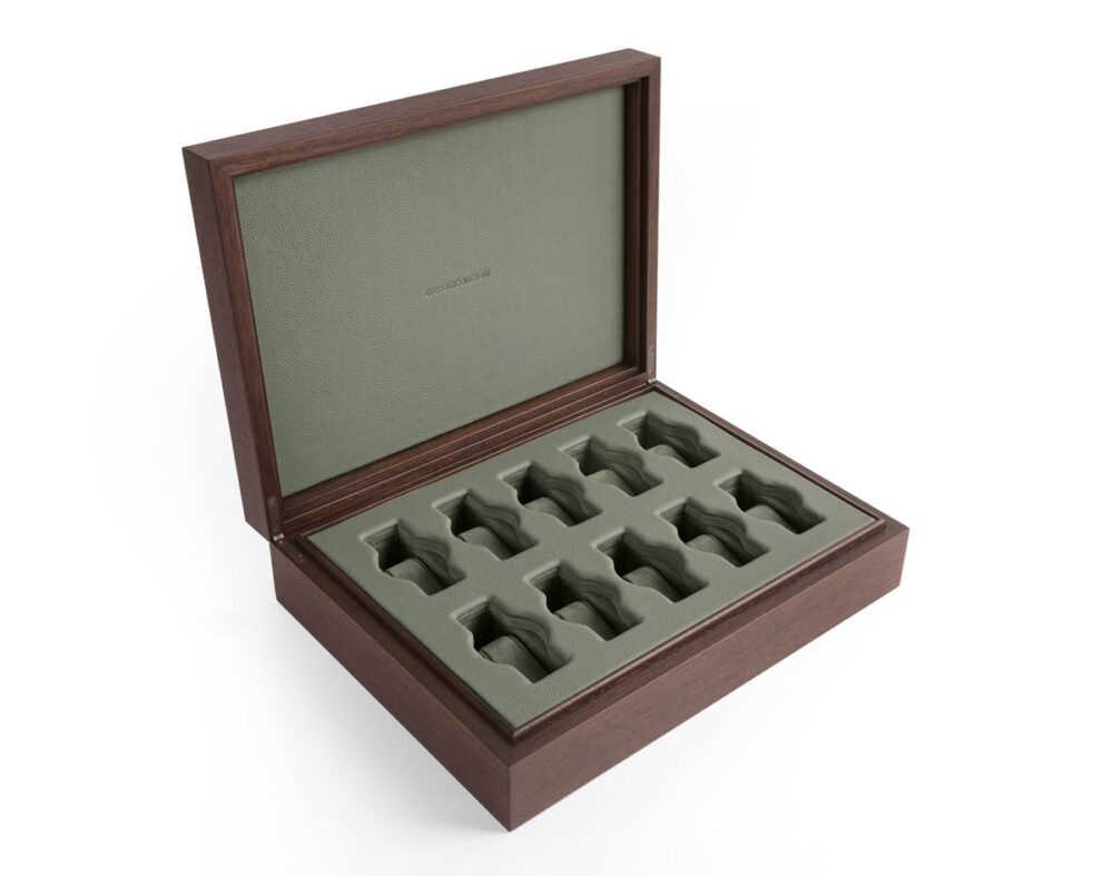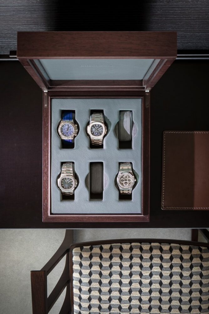 選び抜かれた木材と、彫刻的なフォルム。手仕事の温もりと洗練された美意識が宿るこのボックスは、単なる収納を超え、時計そのものの価値を引き立てる存在となる。