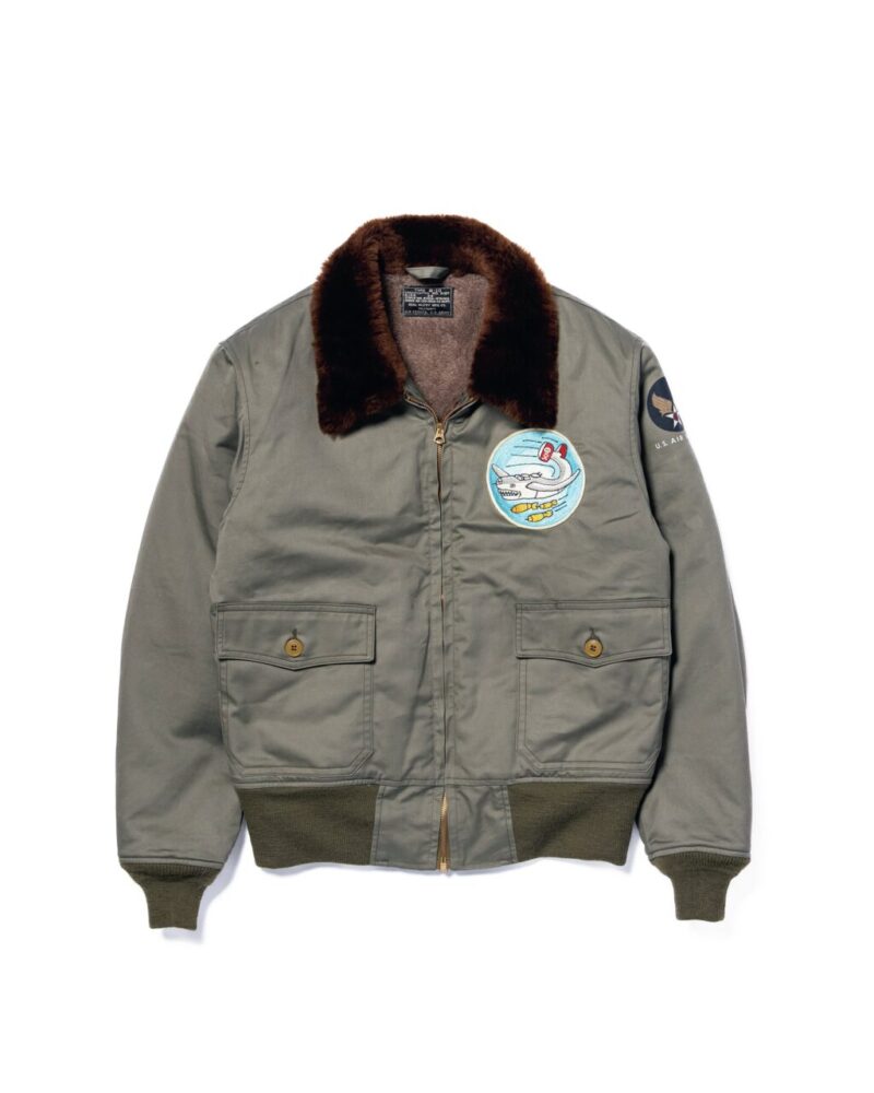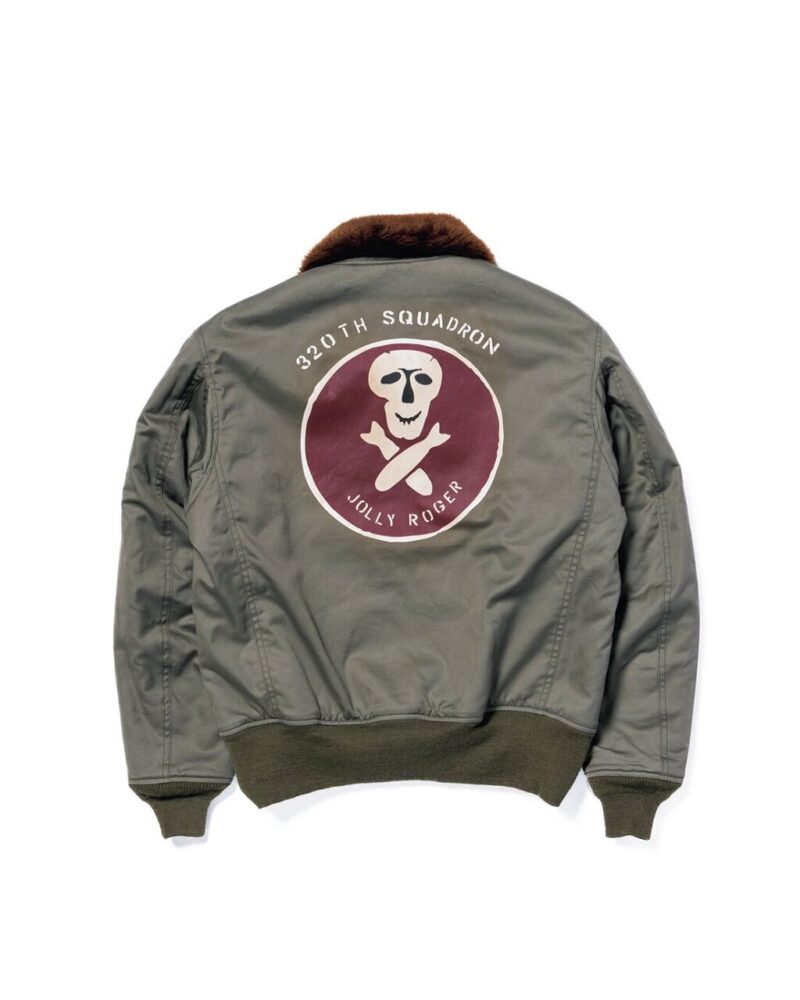 シープシェアリング製の飛行服に代わる1着として、コットンシェルとアルパカライニングを採用し、1943年に登場したインターミディエイトゾーン用ジャケット。9カ月間のあいだに18回もの発注が行われたこともあり、シルエットや襟の形など、コントラクターごとに細かな意匠の違いが見られる。本モデルは、なかでもエポレットのない個体を再現。B-24重爆撃機の部隊であった第90爆撃群の愛称であった「ジョリーロジャース」のエンブレムを配したバージョンも同時展開される。