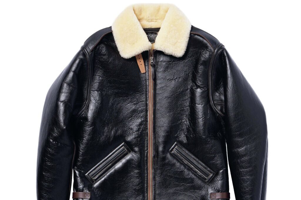 B-3よりも軽量で、高い運動性を誇るジャケットとして、1939年の春に開発されたのがB-6だ。夏季用のA-2と、極寒用のB-3の中間となる、インターミディエイトゾーン用として着用されていた。1939年から1943年までのわずか4年間で9回も発注されており、その最終型のディテールを取り入れている。アジャスタの役割を担う裾のレザーストラップもそのひとつ。ムートンの毛足の長さに限っては、当時の規定である1/4インチでなく、あえて長めの1/2インチで再現している。