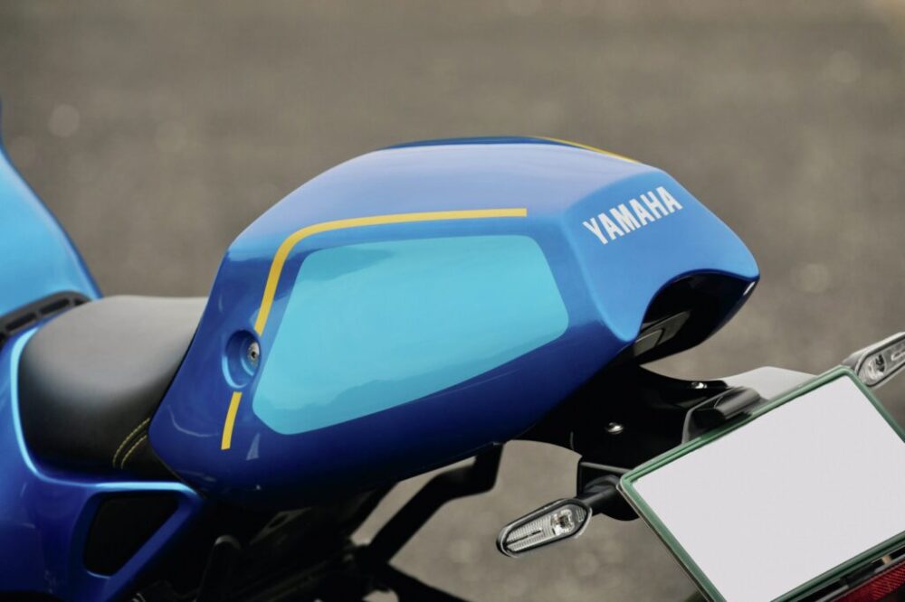80年代半ばにデビューした独特なフロントアッパーカウルが特徴のFZ750をオマージュしたスタイリングが目をひく。ガッツリじゃなくて、このちょっとスポーティな感じがFZを知らない人にも刺さりそう。