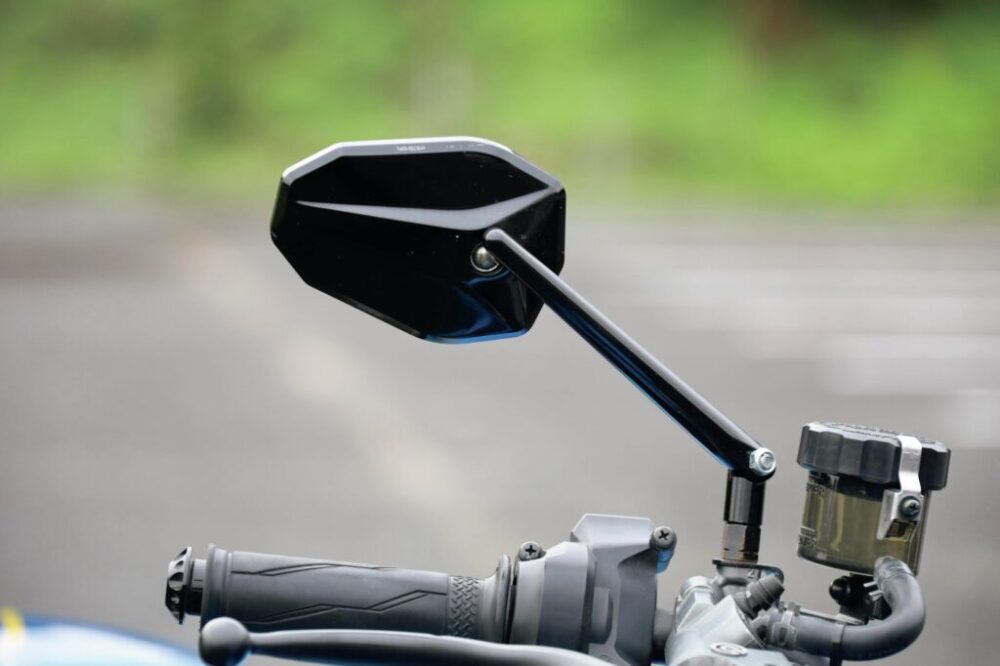 ミラーはハイサイダーのモダンな車体からビンテージまで、幅広い車種とマッチしやすいシンプルな形状のモノをチョイス。FZ750のようにスクリーン横にも取り付けられるようにはなっている。