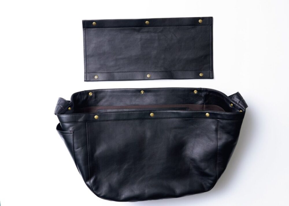 モヒカン小川(以下、小川) その通り! あのバッグをベースに茶芯レザーを乗せて作ったんだよね。サイズが大きいから仕事に必要なものはすべて入れられるし、なんなら革ジャンも入れられる。革の使用量でいうと、これまでの茶芯シリーズのなかでも最大級で、革ジャンを作るのと変わらないくらいなんだよね。存在感も抜群だし、俺は「背負える革ジャン」ってキャッチーコピーをつけた。