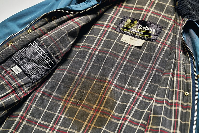 裏地ももちろん青。タータンチェックもバブアーを象徴するアイコンだ。