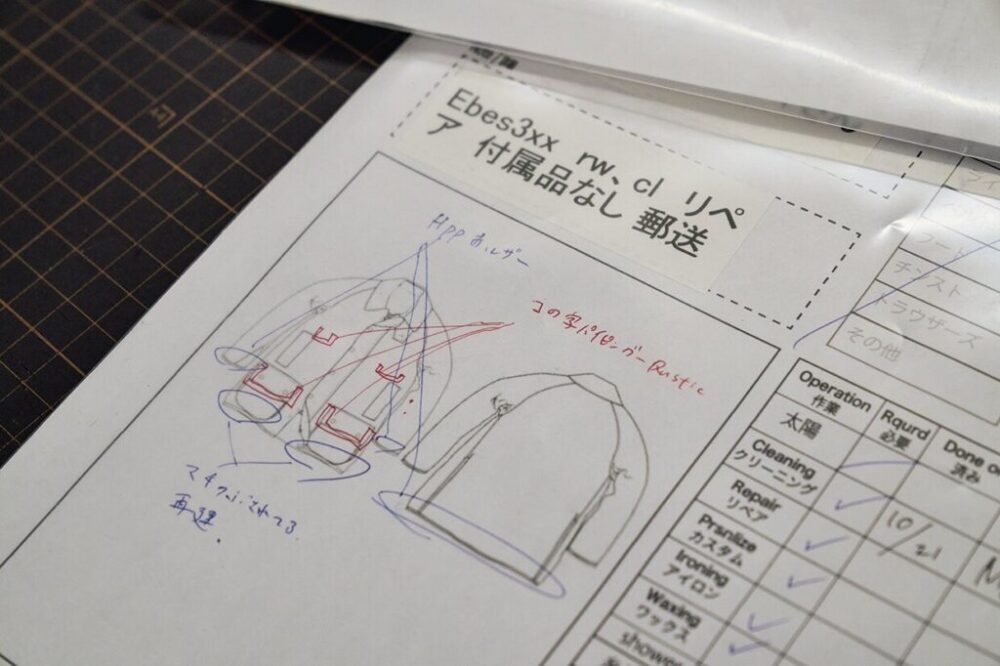 破れ補修、ライニング補修、ジッパー修理など、3階ではリペアも請け負う。「旧いパーツも多く揃えています。中には『表生地を全張替えしたい』とか『飼い犬の噛んだあとは残して補修したい』といった依頼もありました」。文字どおり愛着心を支えるのだ。