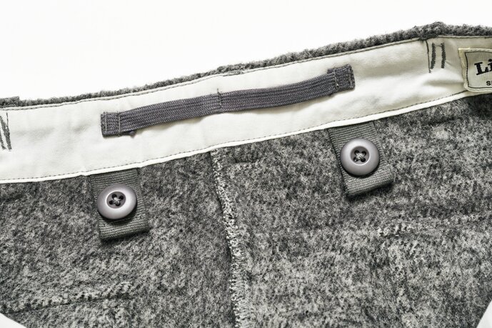 そんなことを考えていた時にこの生地に出会ったんだけど「これで軍パン作ったらフレンチいけそうじゃね!?」と思いついてからは、前のめりになったね。「リバーウール」って生地は裏地なしでコートにすることが多い高級素材なんだけど、ウールの他にシルクとキャメルを混紡していて高級感抜群。