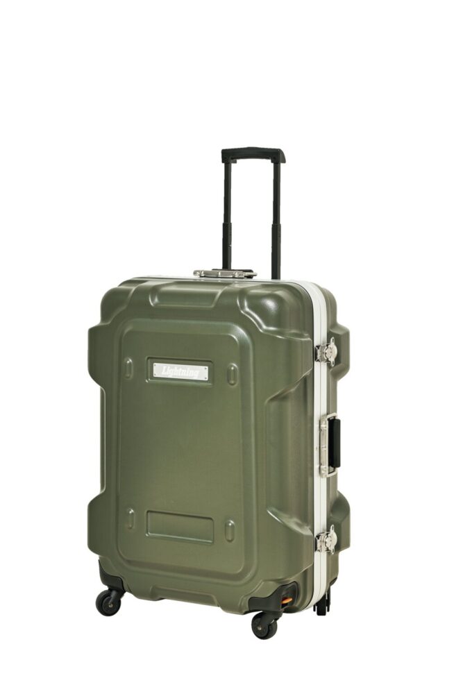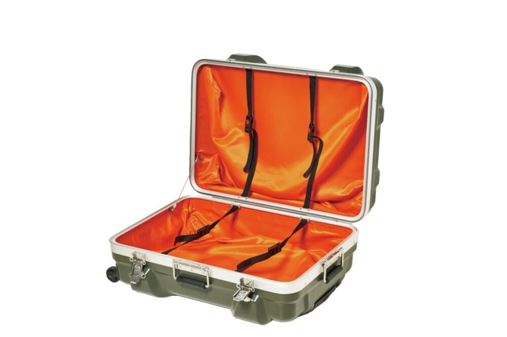 待望の再販売! このキャリーコンテナ最大のポイントは、俺がプロテックスに直接交渉してオーダーしたカラーリング!「MA-1のカラーリング」と思ったあなたは半分だけ正解。実は外側のグリーンは防衛省指定の自衛隊カラーなのよ。内側のレスキューオレンジはもちろんMA-1へのオマージュ。受託手荷物最大サイズと、機内持ち込みサイズあり。114,800円〜