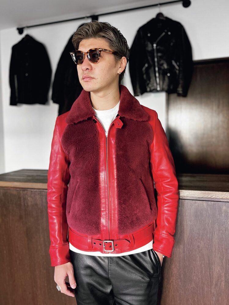 上で紹介したグリズリージャケットとは、打って変わって派手な印象のジャケット。ただ、実際に来てみると、見た目ほどには派手に感じず、案外すっきりと着こなすことができる。右のモデルがディアスキンだったのに対して、こちらはホースハイド。ベジタブルタンニン鞣しの1.3㎜厚の馬革を採用。ムートン部分も「毛流し」と呼ばれるカールしていないムートンを採用し、美しい毛並みを実現している。革ジャン好きの間でも「キワモノ」と呼ばれがちな熊ジャンだが、この機会に自分のモノにしてみてはいかがだろうか? 279,950円