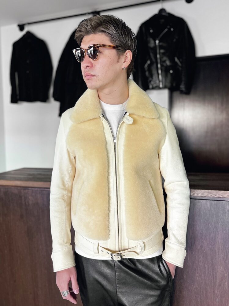 さり気ないアクセントが効いたバイカーウエアを探すなら、アイボリーレザーがおすすめ!