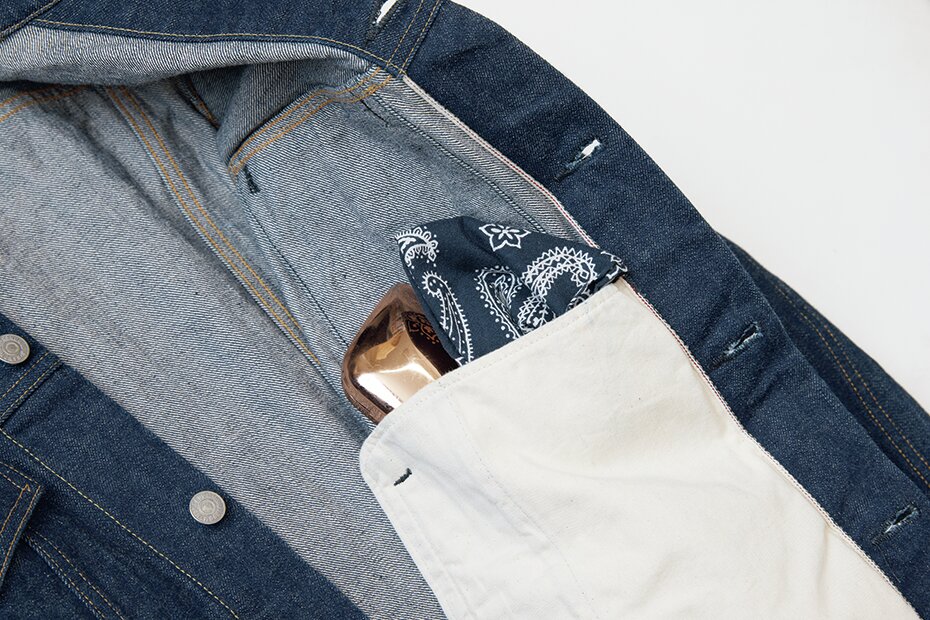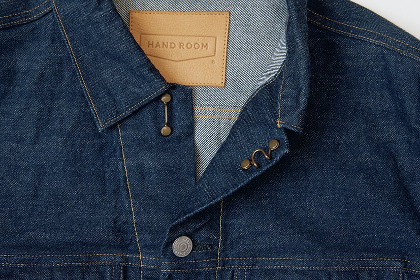 国産ブランド、ハンド ルームによる3rdタイプのジャケット。チェーンステッチ&巻き縫い仕様のカフスなど、本格的でクラシックなつくりをベースとしながらも、両玉縁仕様の脇ポケットや、その袋地が内ポケットを兼用している仕様、そして襟元のホルダーフックなど、現代的な再解釈が盛り込まれている。長年継続しているモデルだが、近年アップデートが施されブランドの新定番となりつつある1着。39,600円(バウ インクTel.03-6427-1590 https://handroom.jp/)