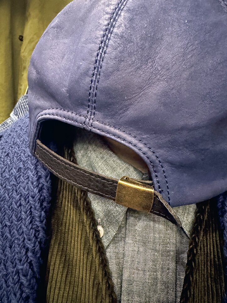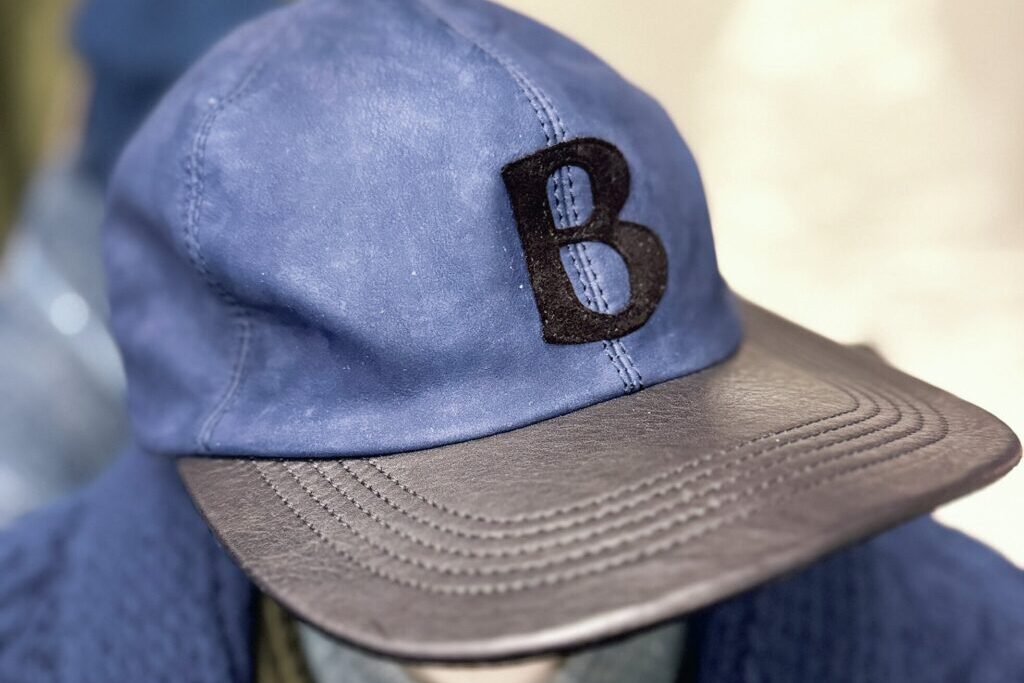 クラウン部分にはヌバック、ブリム表面はタンニン鞣しのカウハイドを使用したベースボールキャップ。同ブランドのトラッカーキャップとは明確に区別がされている。6枚パネル、深めでホールド感があり、頭にフィットするので、あえて裏地は付けていない。一つ一つ職人が丁寧に作っている。同じ型で、グレイやブラックのクラウンカラーもリリース。30,800円(クルーチ Tel.03-6427-2555 https://klootch.jp/)