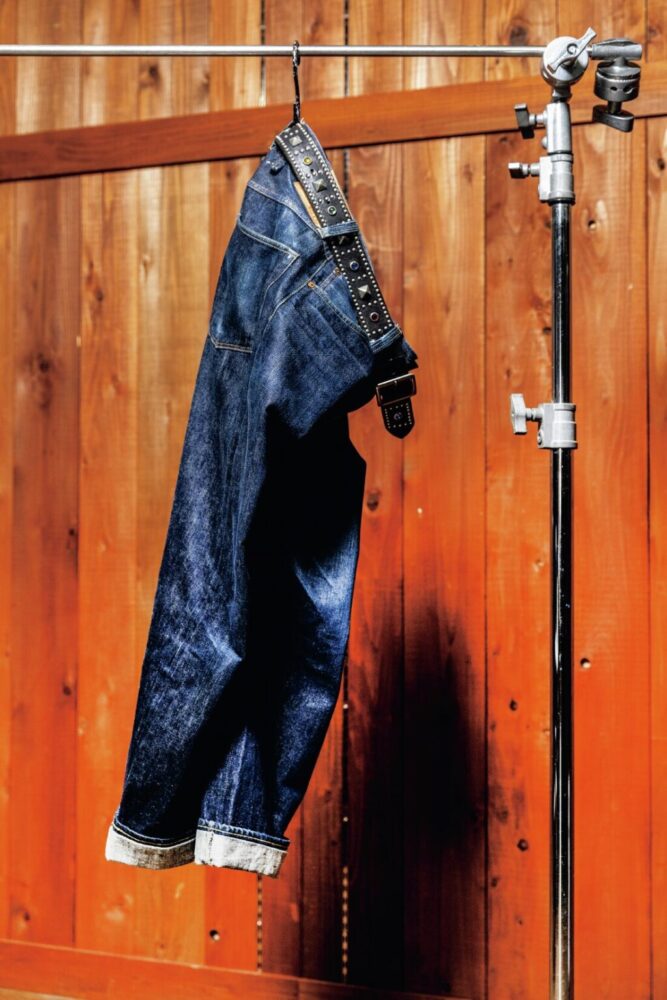 現在進行形で育てているデニムはベルトを通したまま吊るしの保管が最適。後ろのベルトループにS字フックで吊るす。通気性も良くなるうえ、余計なシワは入らない。何より、これから穿いて育てていこうという気概を持たせてくれる。
