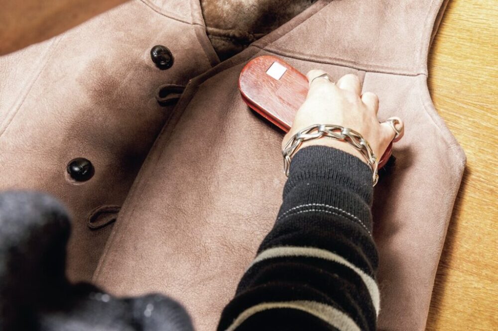 乾燥が終わったら最後にブラッシング。毛並みを整えるくらいの弱さでよい。ヌバックの場合は金属製のブラシは避けたい。