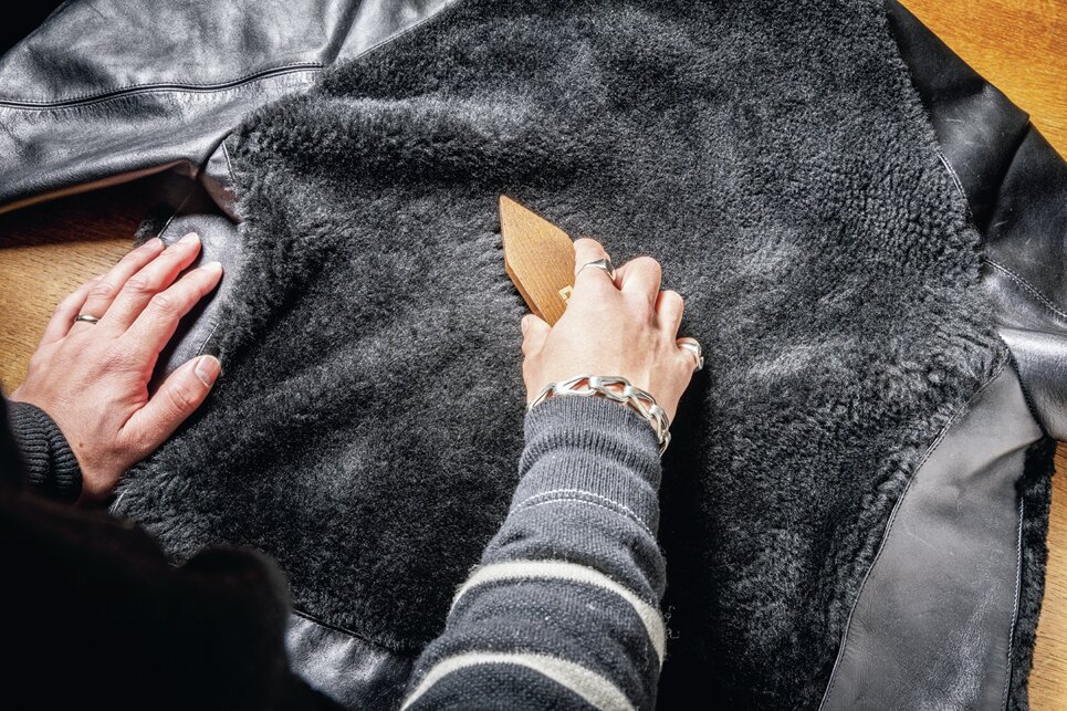ムートンはもともとカールしているものを伸ばしているので、水に濡れると丸まってしまう。そのため濡れたら素早く拭くことを常に心掛けたい。