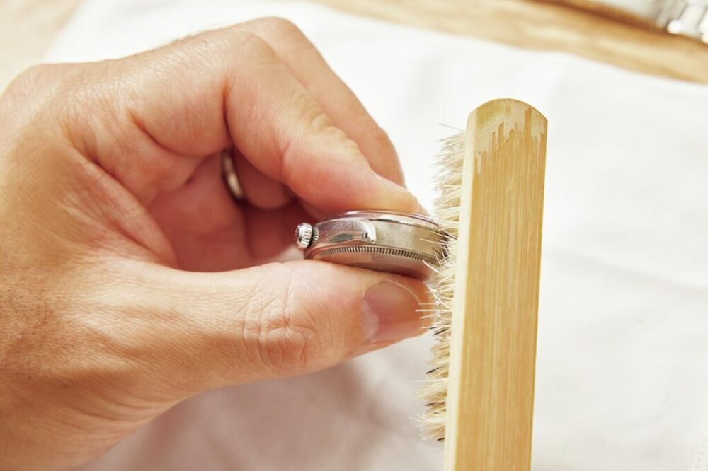 ベルトを外してブラッシング! 風防の傷が目立つなら研磨もあり