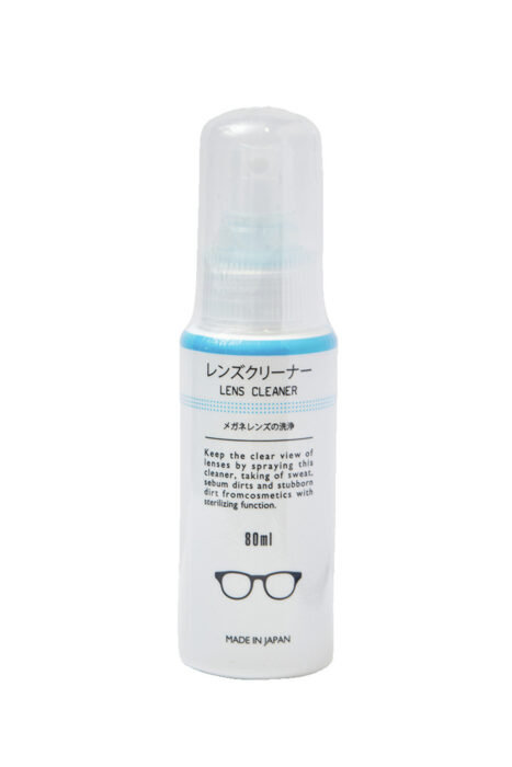 水が残ったままで構わないので、メガネ専用のクリーナーをレンズを中心に塗布する。影山さんのおすすめクリーナーは次頁に記載している。