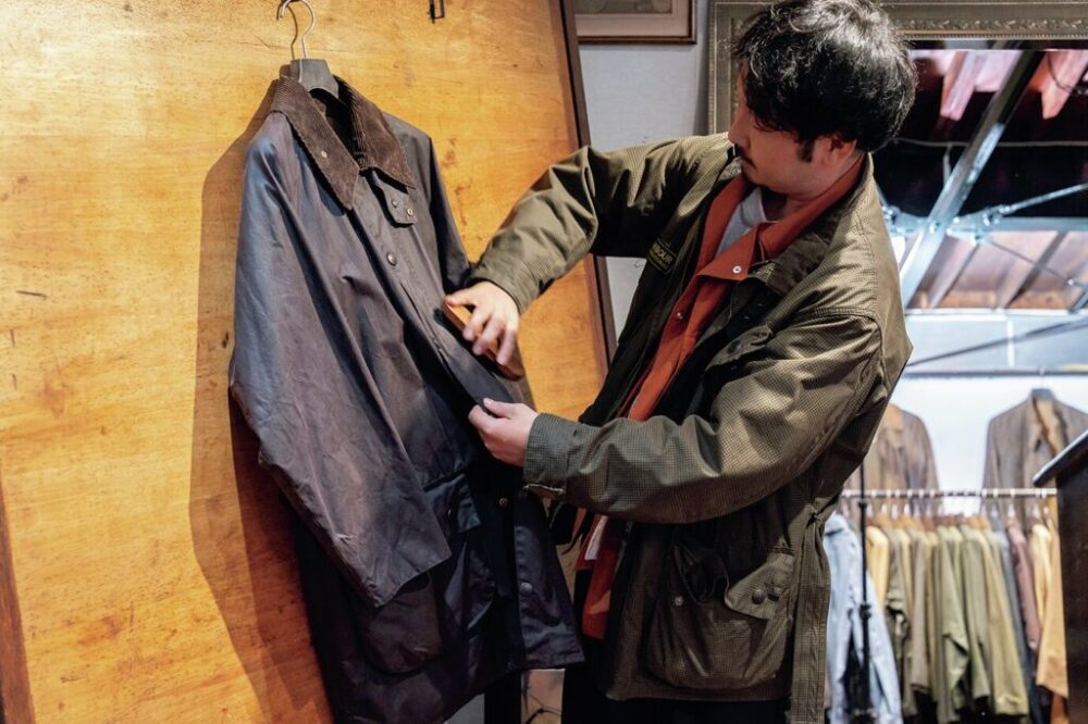 「British wax-jacket market」代表・山岸祐太さん|2017年にバブアーなどのヴィンテージワックスジャケットに特化した同店をオープン。販売だけでなくリペアサービスも展開する。