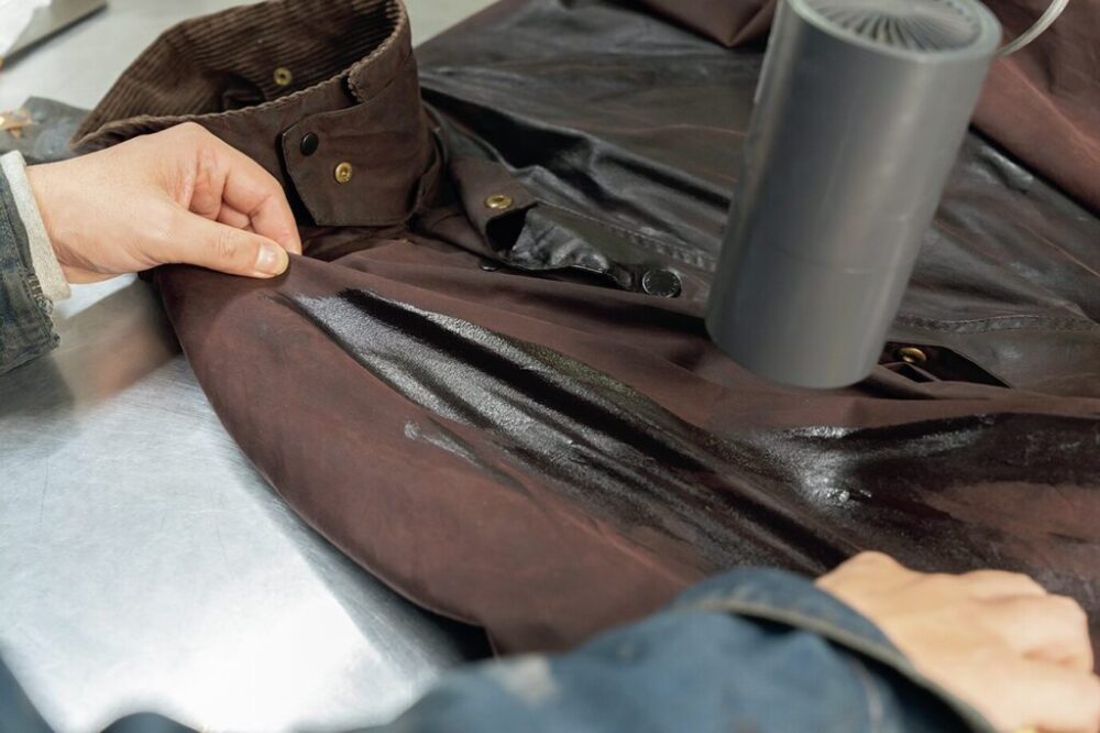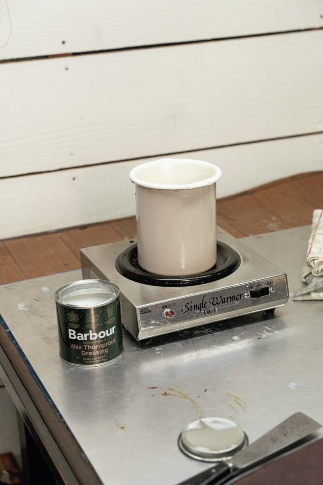 バブアーからもリペア用のワックスが純正で販売。当社はオリジナルのワックスを使用しており、においがほぼない。