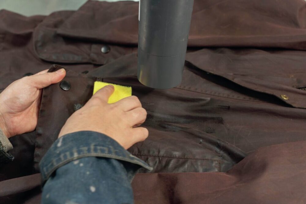 リプルーフする際の最大のコツは常にオイルと生地を温めること。自宅であれば、ドライヤーを固定し、ホットカーペットの上にビニールで養生するくらいがベストである。