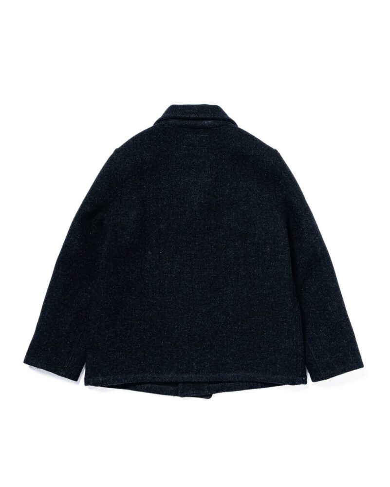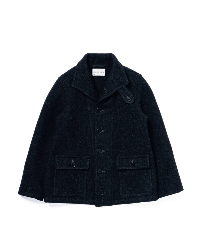 海軍のなかの精鋭部隊であった潜水艦乗組員に支給されていたウールコート。襟についた大きなチンストラップによってスタンドカラーにできる仕様や、軍支給品ならではのネーム欄付きのラベルなど、当時のディテールを忠実に再現。高性能な素材として、軍用や民間のウエアに用いられていたヘリンボーンウールを使用しているため、確かな保温性と防寒性を兼ね備えている。