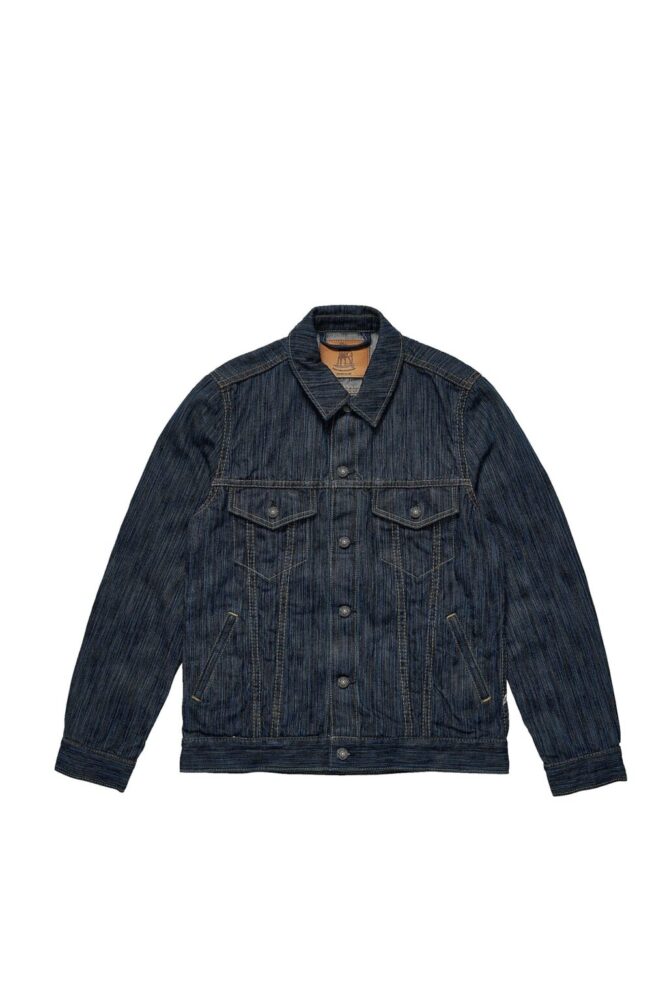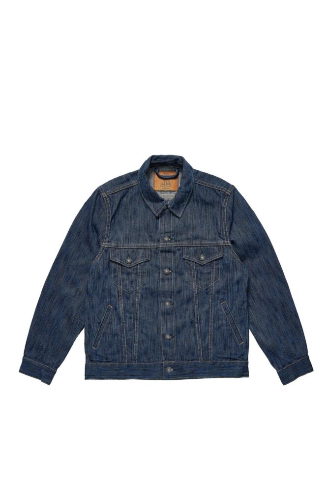 この生地の特徴は、タテ糸に濃色と淡色のインディゴ糸を使い、それらをランダムに配置するという独自の設計にある。またムラ糸を積極的に採用しており、織り上がった生地の表情は、“Waterfall(滝)”の名にふさわしい、流れるような迫力と力強さを感じさせる。カラーはダークとライトの2色展開で、濃淡インディゴ糸の割合を変えることで表現した。通称セカンドと呼ばれるヴィンテージスタイルを踏襲しつつも、ハンドウォーマーポケットなど、アレンジも嬉しい。46,200円