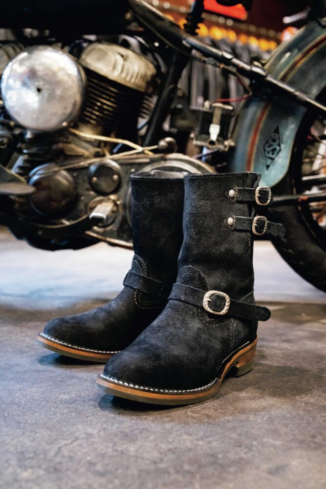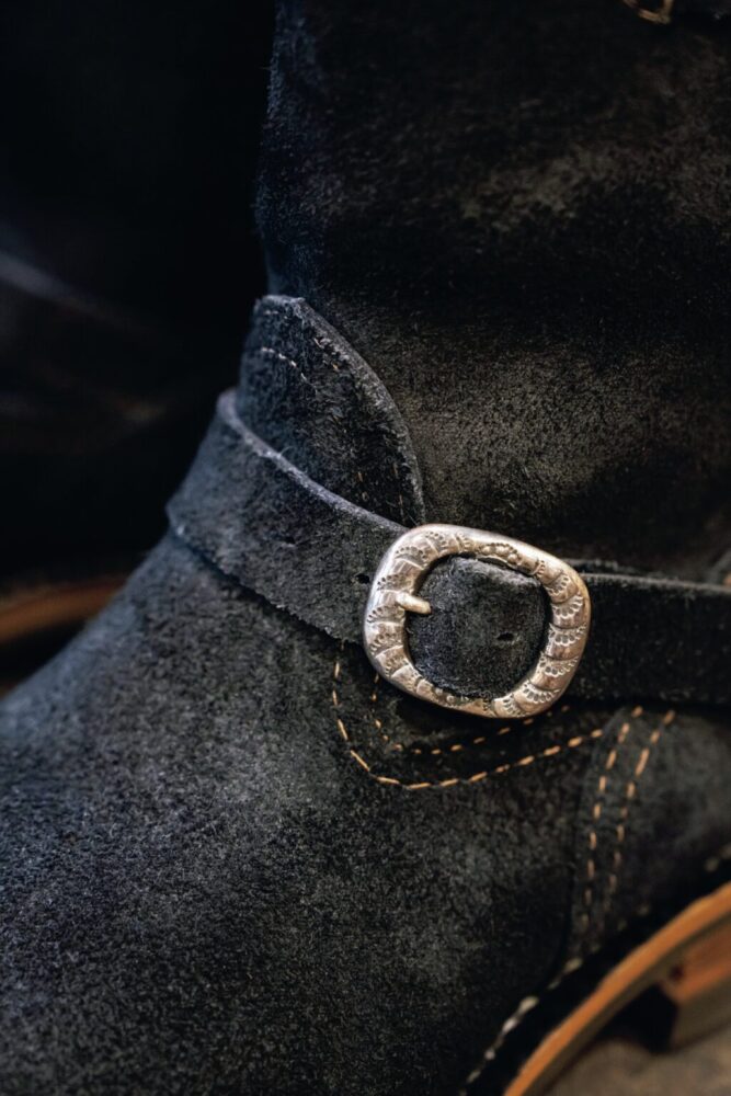 長年、ネイティブアメリカンジュエリーに傾倒し、ライフスタイルの一部となっているヴィンテージナバホのデザインをブーツのバックルに表現。ハンドメイド感のある仕上がりは大きな魅力だ。