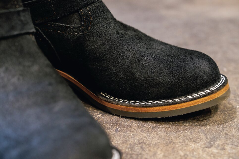 馴染みが良いと履くほどに表情が増すオイルドラフアウトを使用し、その味わい深い上質な革は、WESCOならではの作りの良さのひとつだ。