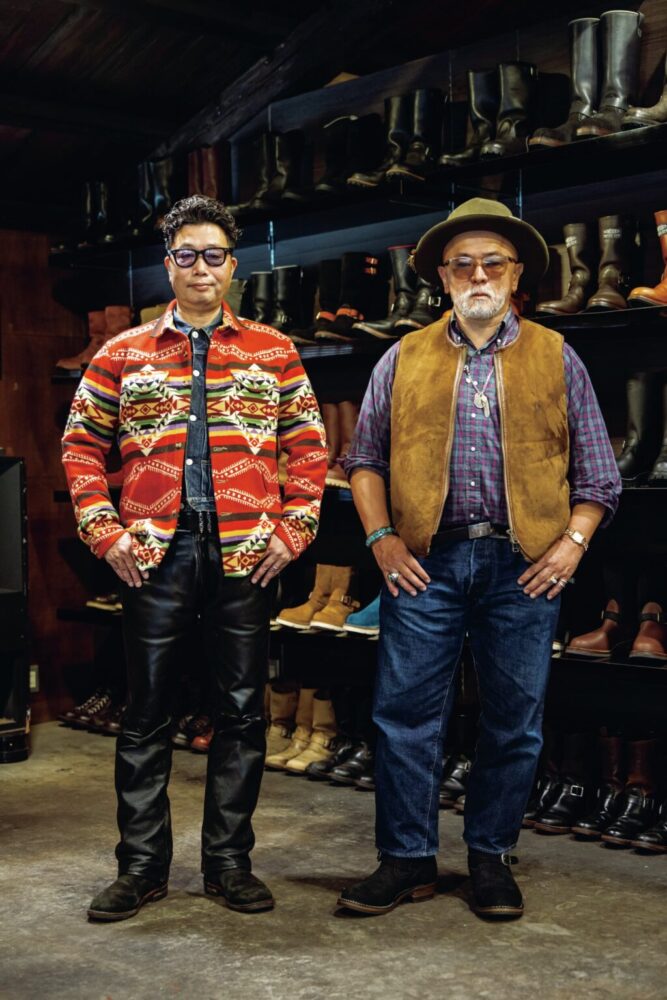 WESCO JAPAN代表の岡本直さん(左)とGDCディレクターの熊谷隆志さん(右)。WESCOのブーツを履きたいという強い想いから、WESCO JAPANを訪ね、岡本さんと会話をする中でお互いの感性が合致し、コラボレーションが実現した。ナバホジュエリーに造詣の深い熊谷さんのライフスタイルに沿ったファッション性の高い仕上がりはもちろん、お互いのリスペクトがあってこそ生まれた記憶に残る唯一無二の1足となっている。
