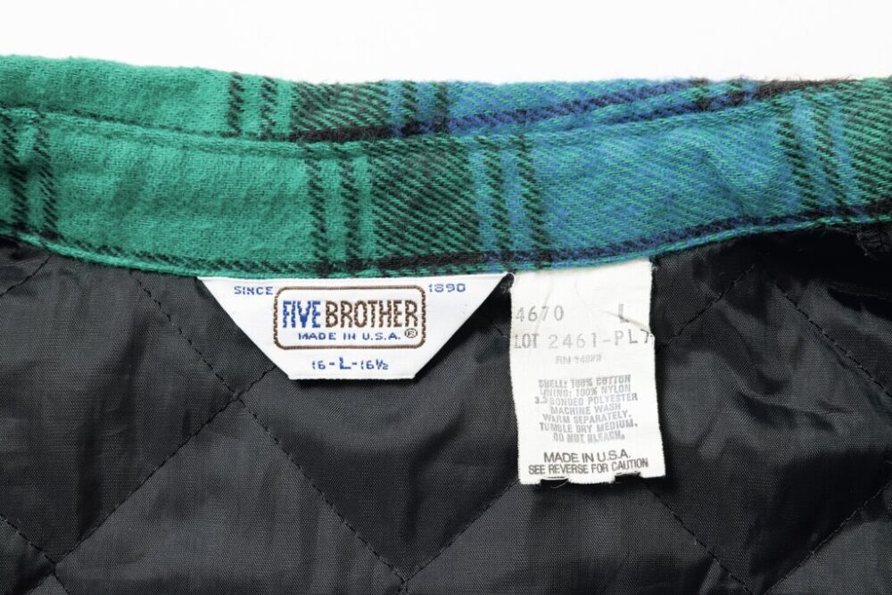 キルティングライナーが付き、アウター的要素も備えるネルシャツ。そのためボタンはすべてスナップ仕様で、丈は長め、裾はスクエアカットとなる。ファイブブラザーズのアメリカ製は人気も高い。16,500円(オキドキ Tel.03-6407-8525)