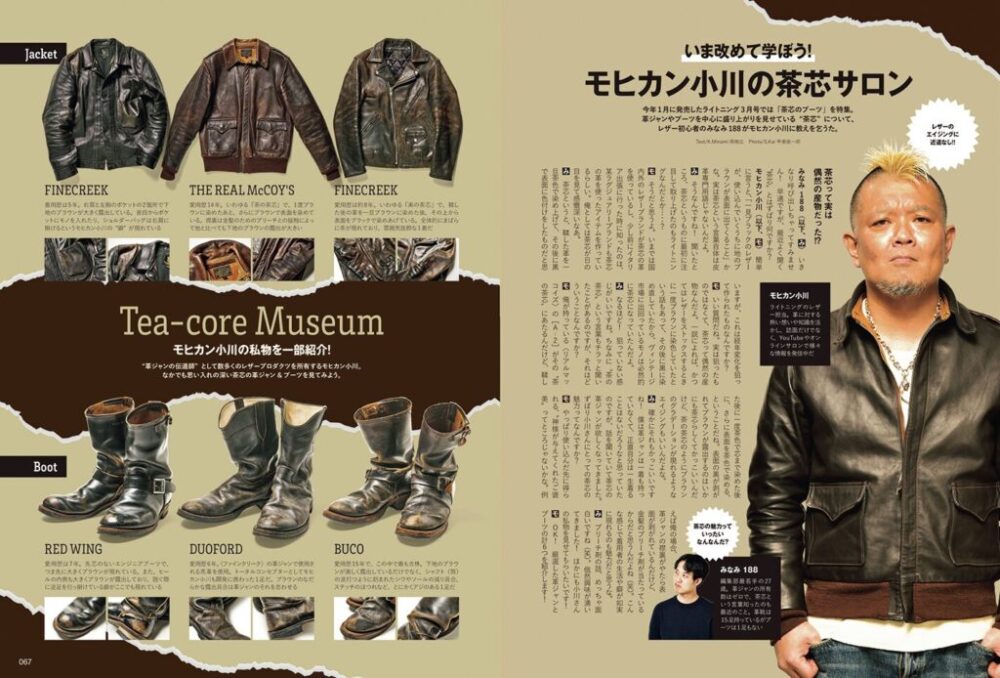 モヒカン小川(以下、小川) そうだったね。たしか、急遽この連載が始まって、急いでアイテムを用意したよな。日頃から身につけているアイテムがあったり、しばらく寝かせているものもあったり、久しぶりに自分の着用してきたアイテムのエイジングを見て、改めて「茶芯っていいな」と思えた回だったね。