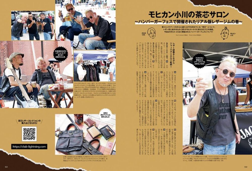 小川 懐かしいな。改めてにはなるけど、この茶芯シリーズは、純国産のホースハイドを使用していて、最初に芯通しでブラウンに染め上げて、その上からブラックを乗せた正真正銘の茶芯レザーを使っている。やっぱり茶芯の醍醐味といえばエイジングで、使い込むことで表面のブラックからブラウンが出てくるというのがレザーラバーにはたまらないポイントなわけで。実際にサンプルを使用して、エイジングの例を見せられたのはよかったよね。ハンバーガーフェスの時は、レザージムの仲間や読者、俺のYouTubeを見てくれている方々と実際に会って一緒にお酒を飲むことができたりもして、本当にありがたかったな。
