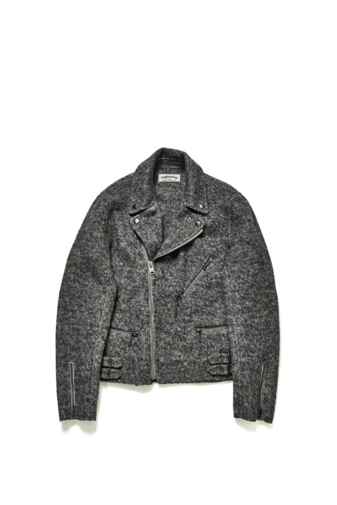 シルク、キャメル、ウールを混紡したリバーウールという高級素材で仕立てた2アイテムは、レザーの伝道師であるモヒ小川、ヴィンテージに精通するランボ三浦の眼鏡に叶う逸品となった。ライダースジャケット90,200円、フィールドカーゴパンツ46,200円