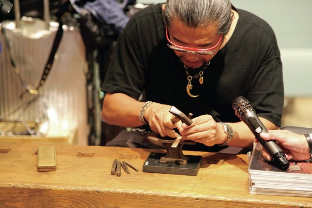 各ディレクターのサインを集めている来場者の姿も。イベントにはピュアブルージャパンの岩谷さんやファーストアローズの伊藤さんら本誌お馴染みの面々も集結。ファーストアローズのポップアップでもお馴染みの伊藤さんのバングル制作の実演は大盛り上がりだった。