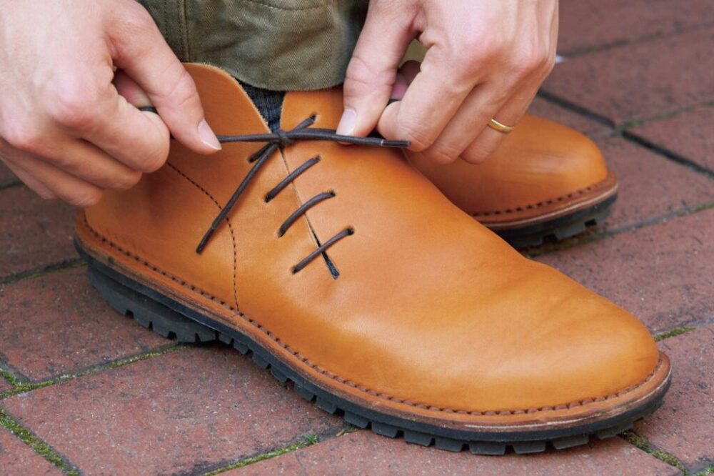 そんな価値観にすっと重なったのが、フォレストシューメーカーの靴だった。まず惹かれたのはその名前。森を歩くための靴――想像しただけで履き心地が伝わってくる。民藝品を思わせる素朴で誠実な佇まい、一枚革で仕立てたアッパーの潔さ、長野・安曇野で夫婦が手がける靴づくり。そして何より、足に合わせて調整できるセミオーダーに心を掴まれた。