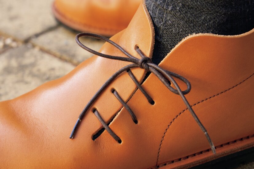 オーダーしたのは、ブランドを代表する斜め紐のハイカットモデル。長年履き物としての理想を追求し、たどり着いた形とのこと。他にもさまざまな形、革の種類、ソールから選ぶことができる。オイルを多く含む、タンニン鞣しの牛革をチョイス。これからの変化が楽しみだ。47,300円(フォレストシューメーカー Tel.070-8483-5938 www.forestshoes.com)