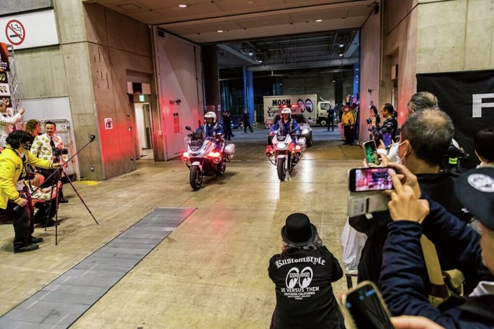 またイベント中盤には、神奈川県警の白バイとパトカーのサプライズライドインもあり、暴力団追放や特殊詐欺撲滅への啓蒙活動が行われ、ムーンアイズとのコラボレーショングッズがプレゼントされた。そのほかピンナップガールコンテストやライブバンドなど、多くのステージコンテンツも行われ、賑やかな1日となった。