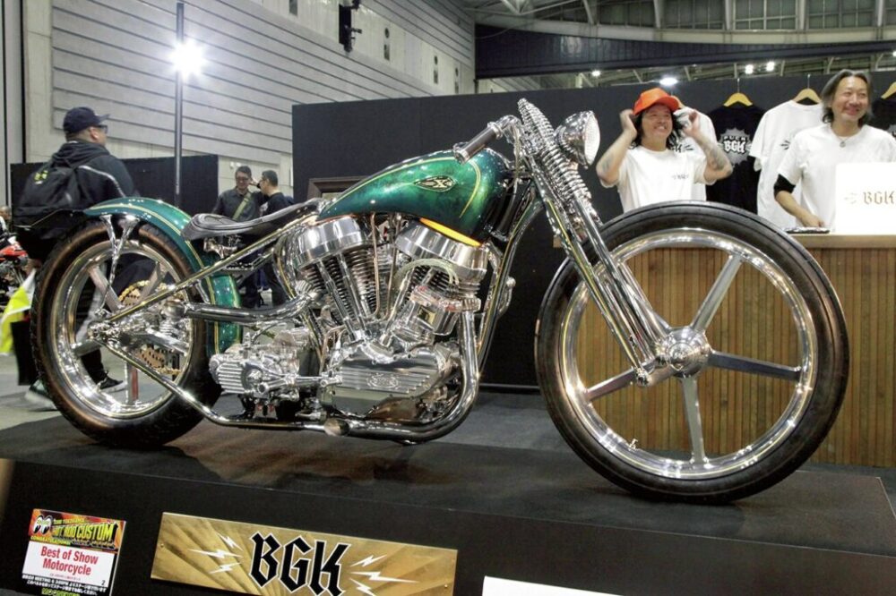 ちなみに24年は該当なしとなったベストオブショーオートモービルだったが、今年はフィットカスタム制作のマーキュリーが受賞。同じくベストオブショーモーターサイクルにはバイクガレージココロ制作のパンヘッドが輝いた。