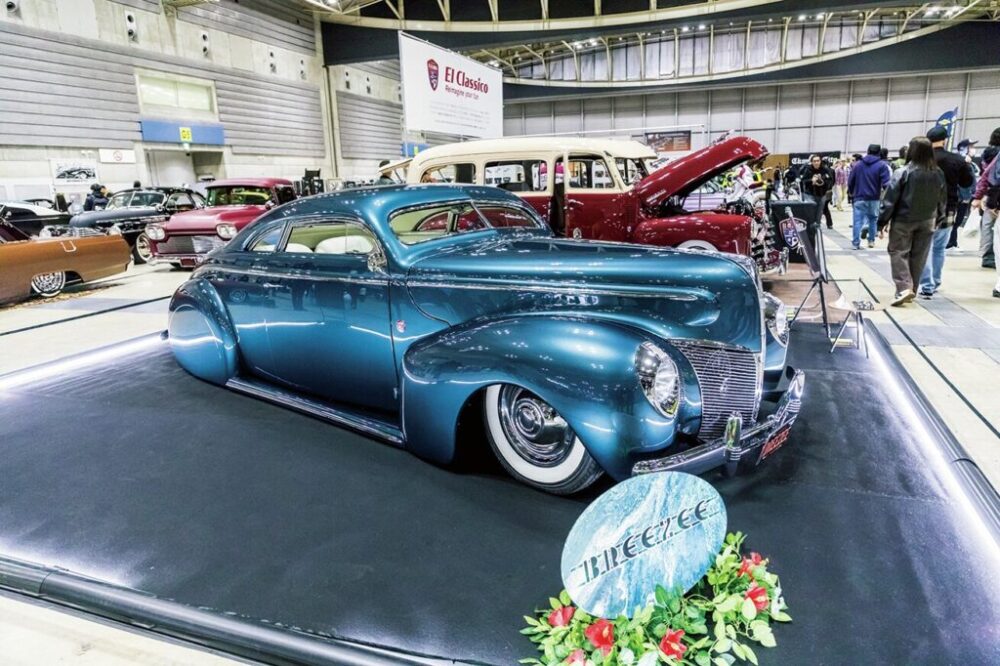 美しいチョップドルーフを持つエル・クラシコ制作の1940年式のマーキュリーエイト”BREEZEE”がベストオブショーオートモービルに。流麗なボディラインはもちろん、徹底してショーアップされたエンジン&エンジンルーム、インテリアなど、どこをとってもしっかりと手が入っている一台。駆動系やエアサスを装着した足まわりもアップデートされており、快適なクルーズが可能。