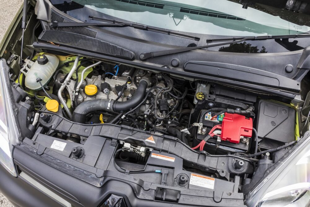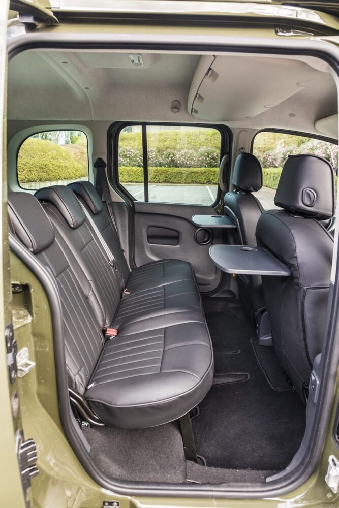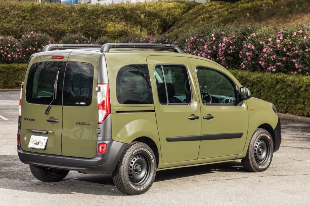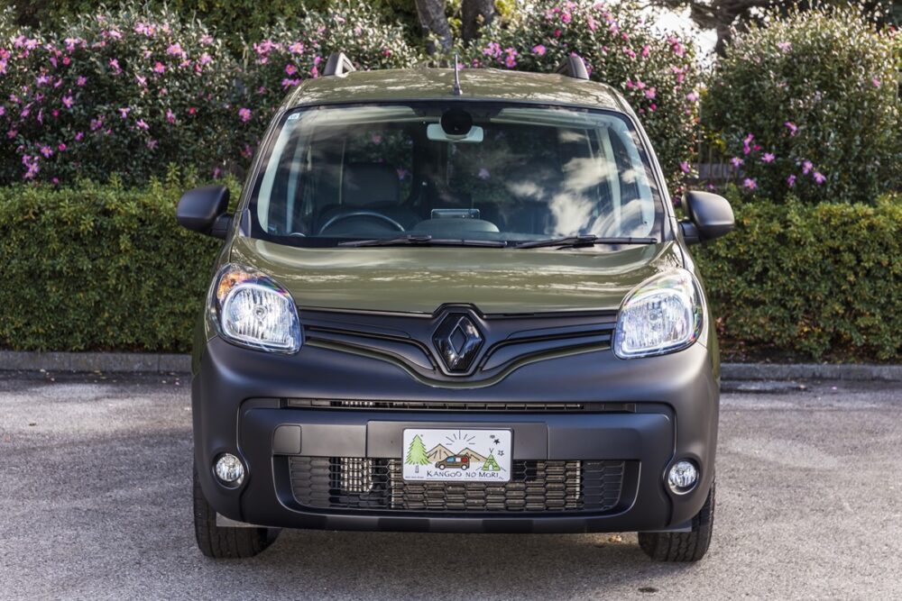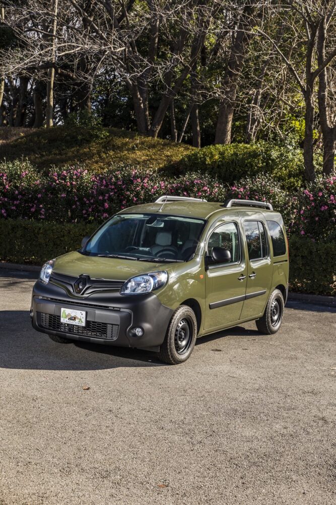 今回紹介するのは、ルノーカングーの専門店として常時20台以上の在庫を誇るカングーの森が販売する20年式だ。同社でジープのタンクというオリーブグリーンでリニューアルペイントされ、純正よりもひと回り大きなタイヤを装着することで、オフロードテイスト満点の一台となっている。天井が高くラゲッジスペースもかなり広いカングーだが、それでいて2代目モデルの全長は4・3メートルと決して大きくない。これは駐車スペースに限りのある都心のユーザーには嬉しい限りの仕様。取材車両は純正オプションのルーフレールも備わるため、ルーフにも荷物を搭載でき、アウトドアユースにもピッタリな一台というわけだ。