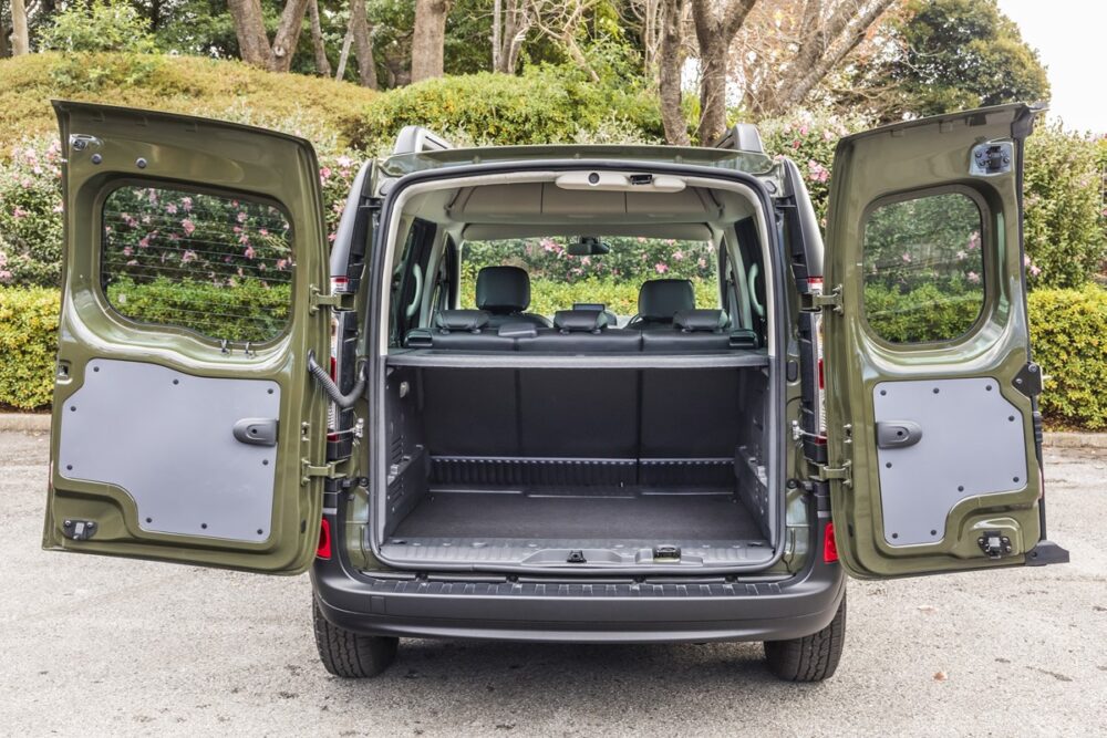 リアゲートは左右6:4で観音開きする構造。カングーはラゲッジスペースが広いのが特徴だが、開口部が広く荷物も積みやすいのもポイント。