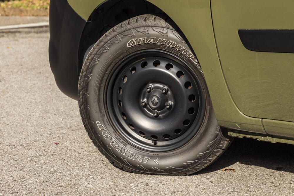 足回りは純正のスチールホイールに、標準よりも若干直径の大きい205/70R15サイズのタイヤでオフロードテイストをアップ!