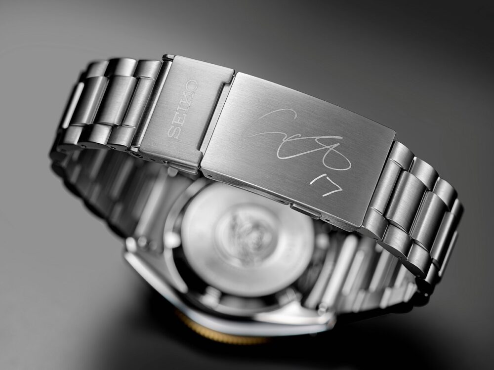 限定モデルならではの特別仕様として、大谷選手の背番号「17」がりゅうずに入り、大谷選手のサインが中留にマーキングされる。また、裏蓋には「SHOHEI OHTANI LIMITED EDITION」の文字と限定シリアルナンバーが刻まれる。