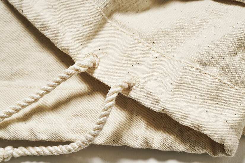 ちなみにジョンのものはスカイブルーとのことで、当時は防水性や耐薬品性のために船上でオーバーダイされていたらしい。でもこれはまっさらな生成り、つまり何色にも染められるということ! 珈琲で染めるか、はたまた染料を買って鮮やかな色に仕上げるか。本気で考えていたら昨晩寝れなくなりました。虹色の個体なんてのも発見されているそうですよ。こういう楽しみもあるからこそ、復刻という営みは奥深い!