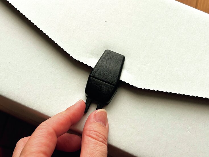 樹脂ラッチ(留め具)付きで蓋を固定できるのが最大のポイント。先端部分をつまむことでロックが外れるという仕組みだ。