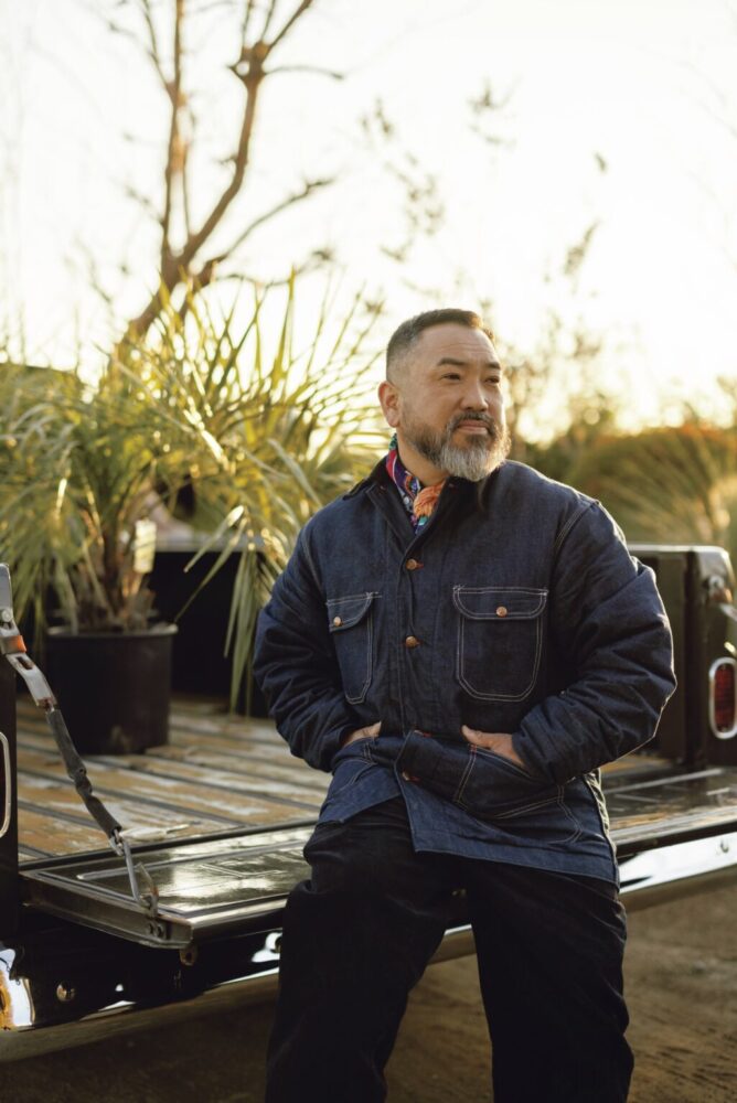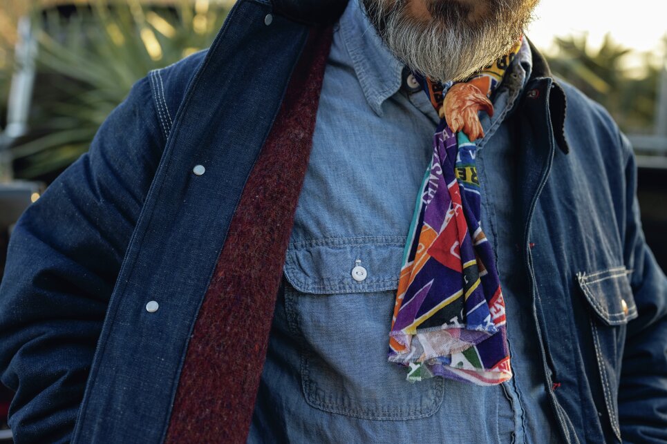 「西海岸から影響を受けたドライガーデンを提案していることもあって、一年に一度は必ずアメリカ現地を視察し、自分たちの方向性を確認したり、新たなトレンドを掴むことを欠かしません。また旧車のシボレーやハーレーに乗っていることもあり、西海岸のカーカルチャーが大好きなので、スワップミートなどにも必ず出向きます。そんな時に出会ったのが70年代のビッグマックのカバーオールでした。昨年に買ったばかりのデッドストックなので、これからじっくりと育てていきたい一着。ウールのライニングが付いているので野外での作業からハーレーに乗る時まで着用でき、自分のライフスタイルでオールパーパスに使える存在なんです。ただデニム生地は濡れたら面倒なので、植物の水やりの時はさすがに着ませんけどね(笑)」