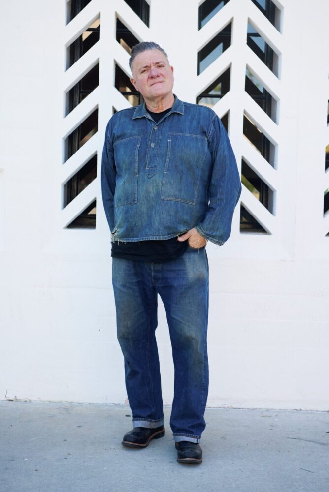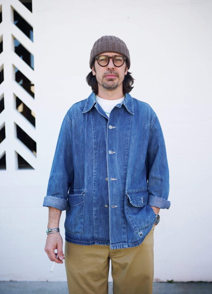 年季の入ったヴィンテージディーラーであるロイドは、デニム・オン・デニム。US ARMYのデニムプルオーバーは第一次大戦期のシロモノだ。100年経っても着ていられるタフな1着はタフガイにはピッタリ。プルオーバーならオンリーでコンプリートしちゃう。レプリカも出ているので2着目、3着目に狙いたい。