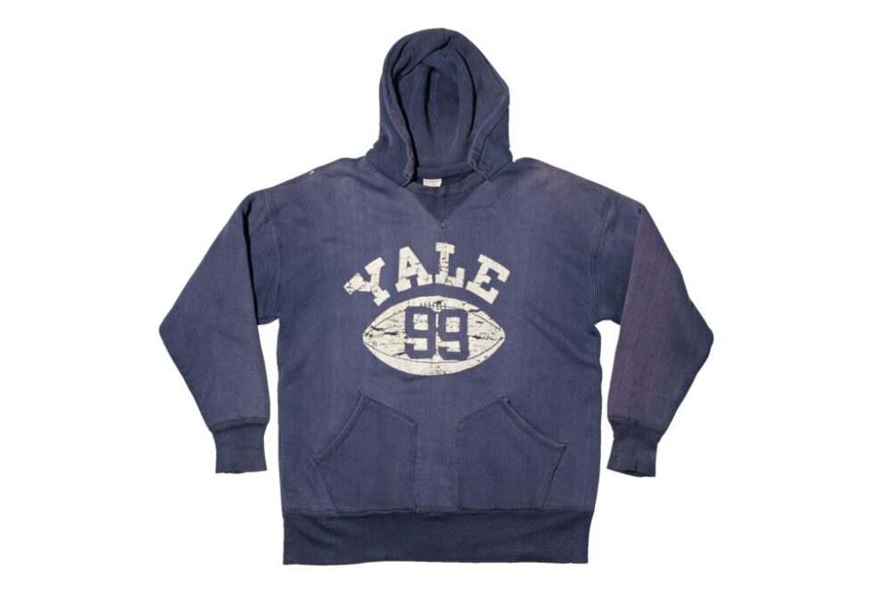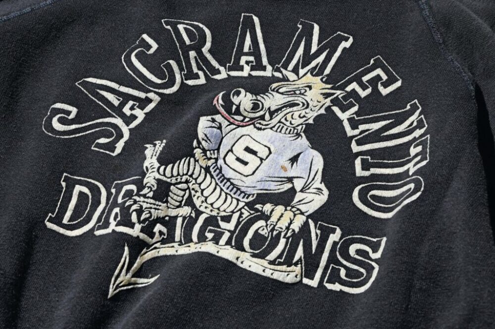 「古着ってどのアイテムでもそうかもしれないけど、黒は難しいです。やっぱり残らないんですよね。でも、その分だけ異様に存在感があります。これまで何百枚とフロッキープリントのスウェットを見てきましたけど、同じものが本当に少ないんです。当時、学生がリアルに着ていたもので、“売るための商品”じゃなかった。だからチームの人数分みたいに少数で作られることが多かったんですよね。集め始めた数年前でさえ、高くて500ドルでも『高いな』と思っていました。それがいまでは2000ドルを超えることも珍しくない。流行と希少性、その両方ですね。本が完成するのは1つの目標でした。達成されたら『ここで終わり』って思っていたのですが……。まったく終わらないんですよ(笑)。昔から収集癖がある性格なので」