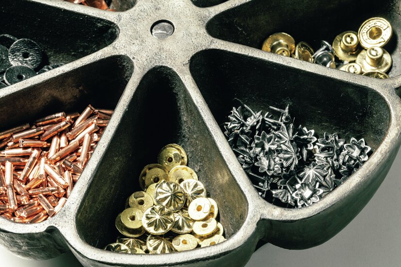 真鍮や銅などのパーツは型からオリジナルで製作。一方でカスタム用のシルバーパーツは自身でキャストから作っている。研磨から打ち込みまですべてを自身の手で行っている。