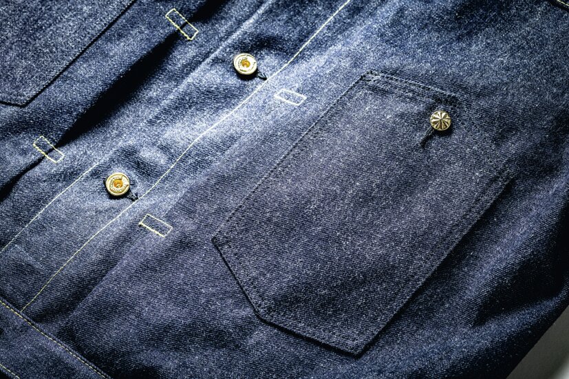 50年代以前のデニムワークジャケットをベースにしながらも、両胸にネイティブアメリカンからインスパイアされたダイヤ型のポケットをカスタム。オーダー会ではボタンからバックルまでシルバーでカスタム可。44,000円〜