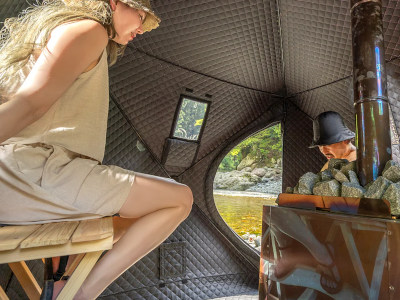熱すぎず、汗もかかず、服を着たままで着替え不要。テントの中でじんわりと体の芯から温まるだけ。サウナが苦手な方も、お子様も、初めての方も、誰でも気軽に楽しめる、新感覚のくつろぎ空間を楽しめる。