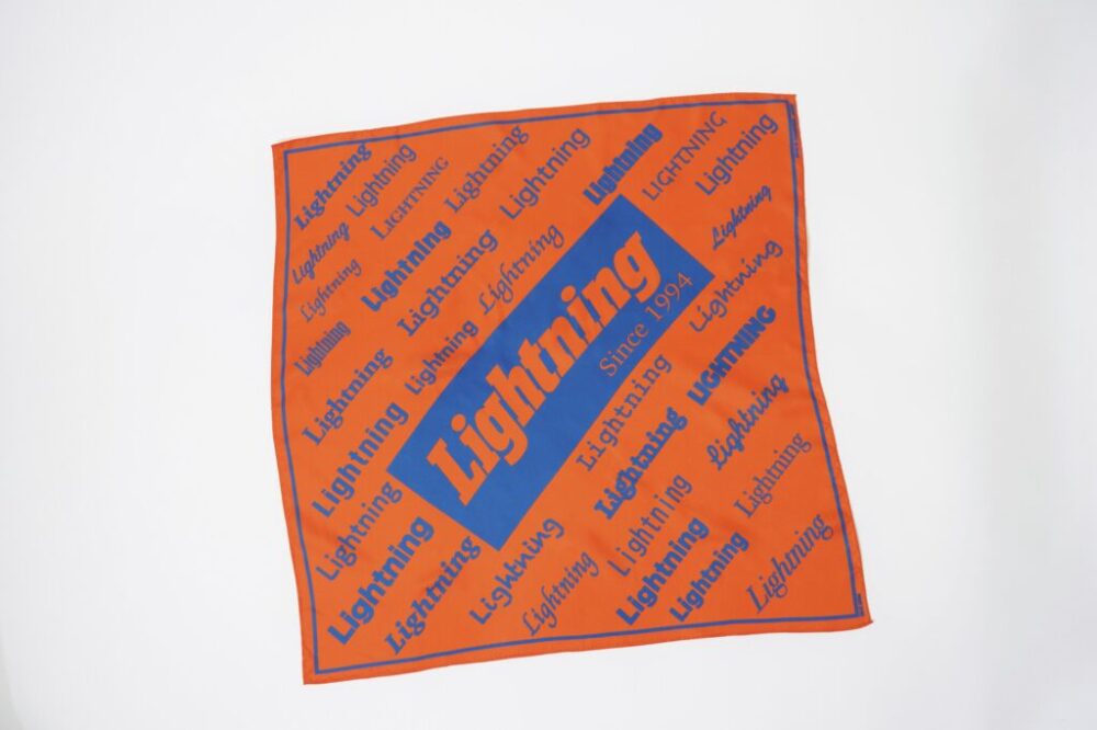 一見、派手なカラーと思うかもしれないが、実際に巻いてみるとちょうどいい塩梅のアクセントカラー。散りばめられた無数のLightningも首元で程よい主張になるのだ。とかくカジュアルな装いになりがちなアメリカンカジュアルを、スカーフによって少し品格を加えるのが大人の流儀。13,860円